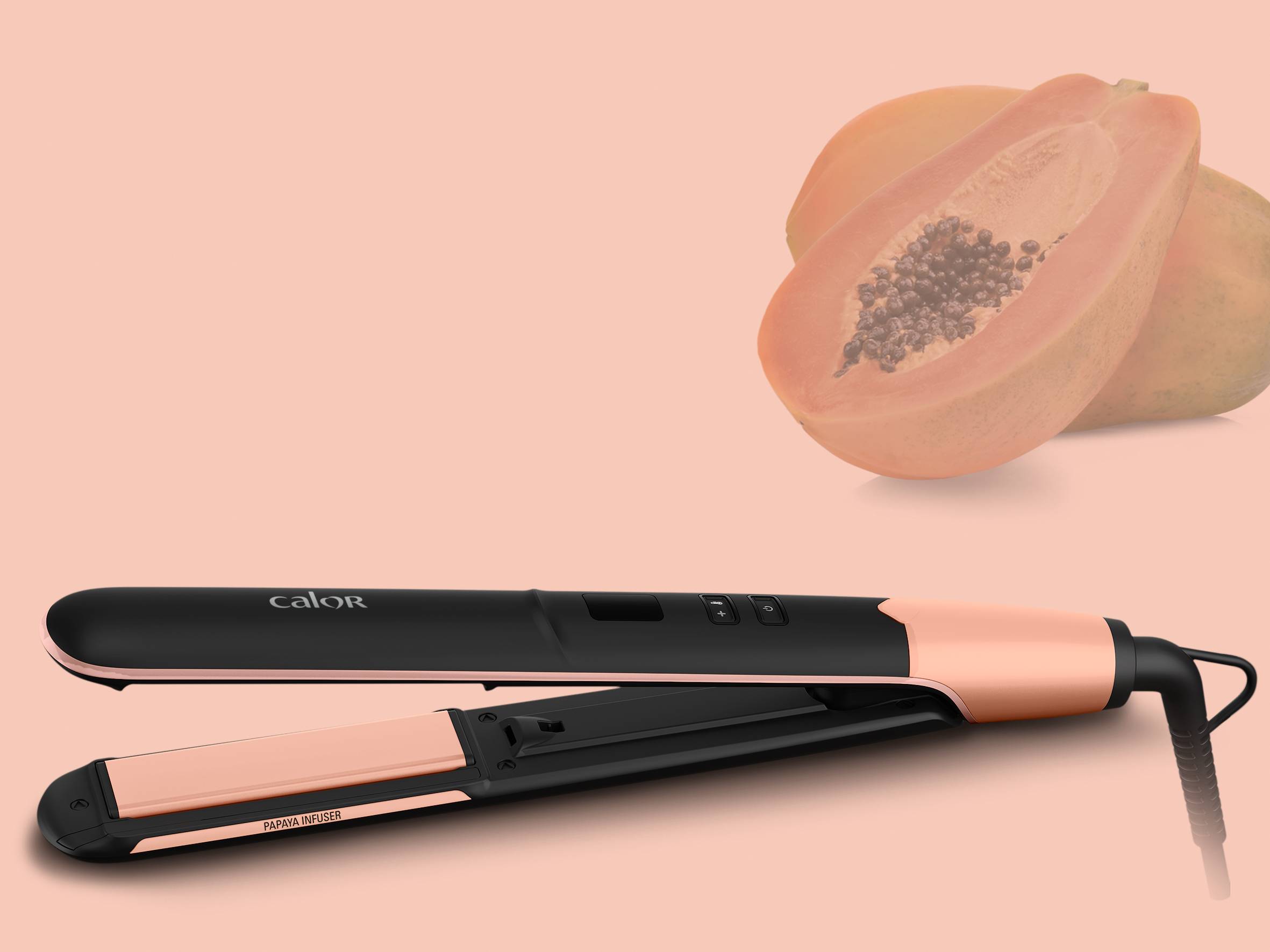 Un lisseur doté d'un infuseur de brillance à la papaye pour des cheveux lisses et soyeux avec une touche de brillance supplémentaire Un revêtement céramique pour des cheveux lisses à la brillance éclatante Système Liss & Curl pour une utilisation 2 en 1 en un seul passage, qu'il s'agisse de dessiner des boucles/ondulations ou de lisser vos cheveux à la perfection