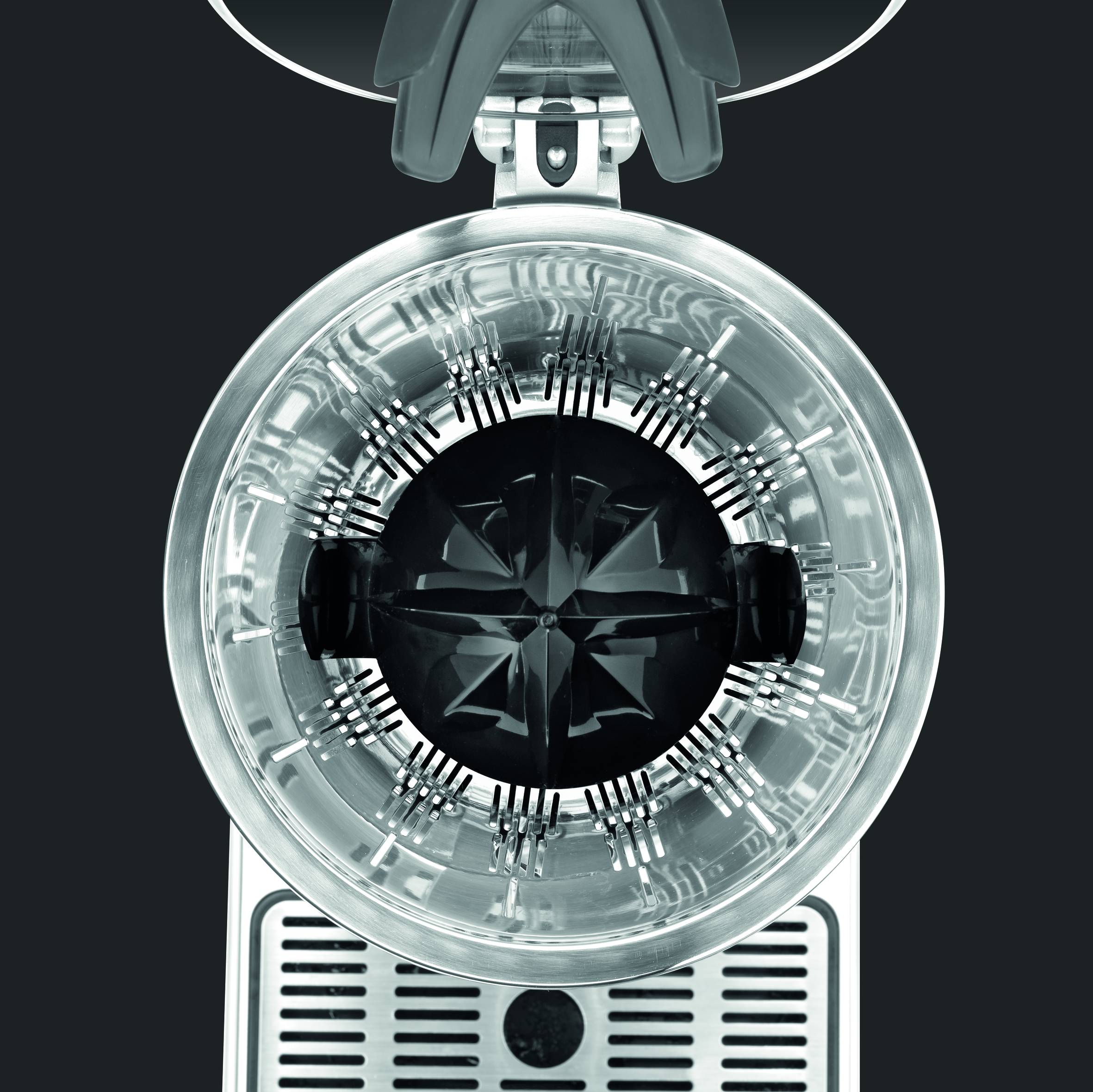 Presse-agrumes électrique en fonte d'aluminium qui sert le jus directement dans votre verre. Choisissez d'utiliser l'extracteur de jus motorisé à l'aide du levier, ou bien optez pour une extraction manuelle. Le moteur puissant de 130 W et le filtre à pulpe en inox vous permettent d'obtenir des jus de qualité optimale afin de préserver tous les éléments nutritifs et les vitamines des fruits. Bac récepteur amovible et grille inox.