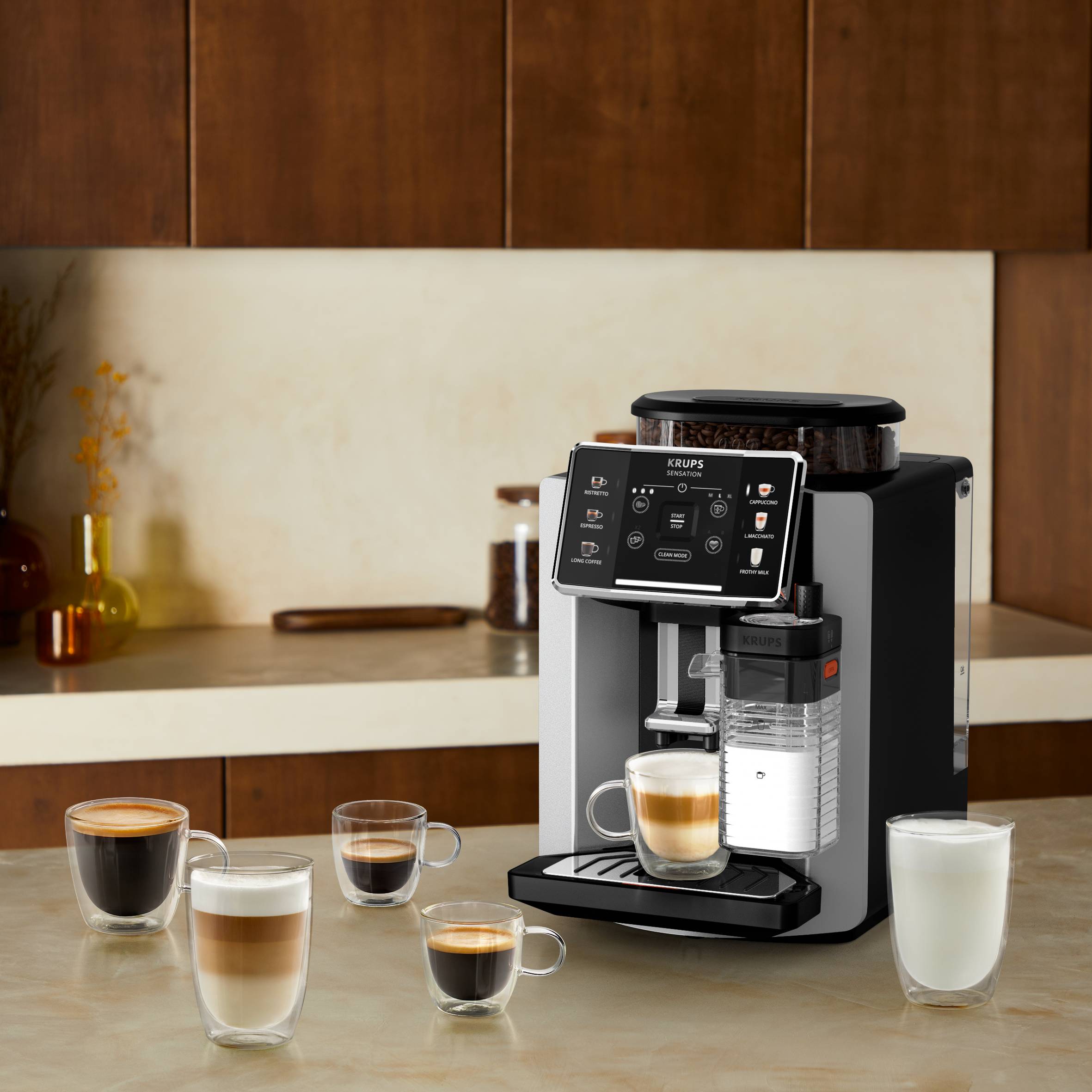 Savourez d'incroyables cappuccinos et boissons lactées sans aucun effort. La machine à café automatique Sensation Lait de KRUPS vous permet de réaliser 3 recettes café : Ristretto, Espresso, café long et 3 lactées : Cappuccino, Latté Macchiato, Lait moussé, avec des grains de café fraîchement moulus et une mousse de lait parfaite grâce à la technologie Milk Maestro exclusive. Préparez des cafés et boissons lactées personnalisés dignes d'un barista avec cette machine à café facile à nettoyer et à entretenir qui trouve sa place partout.