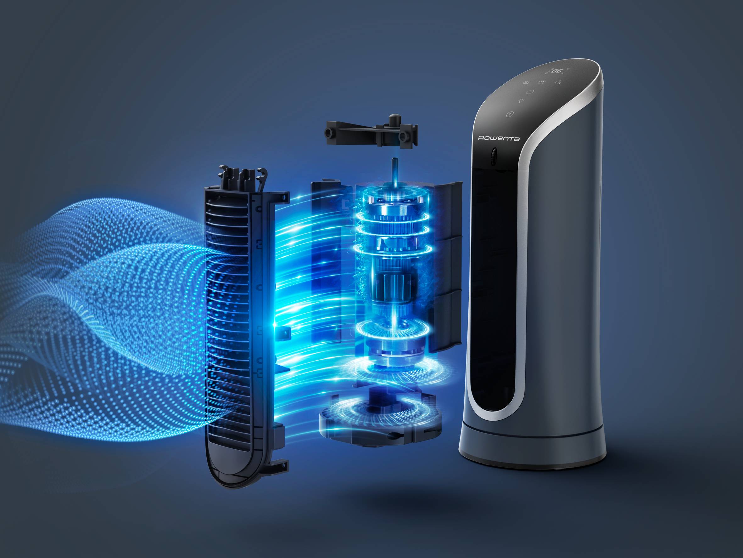 Profitez d'un rafraîchissement intense dans un silence extrême tout au long de l'été, ainsi que de nuits calmes et paisibles grâce à notre tout nouveau moteur Effitech. Sa nouvelle technologie offre une puissance exceptionnelle caractéristique de Rowenta tout en consommant 60 % d'énergie en moins*.