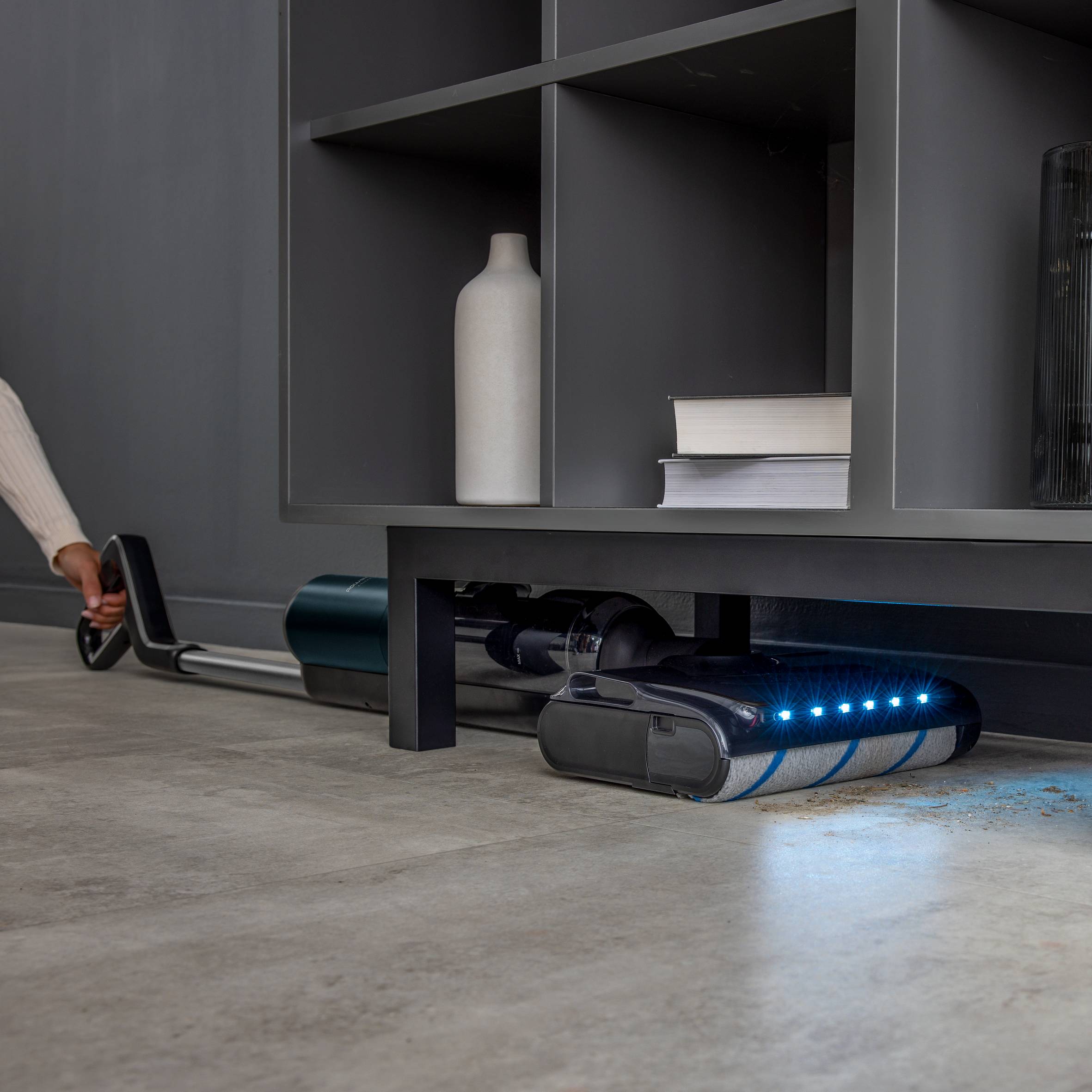 Eliminez toutes sortes de saletés sèches et humides grâce à ses 530 rotations/minute, la détection automatique de la saleté et un rouleau toujours lavé à l'eau claire Une flexibilité à 180° pour aspirer sous les meubles et un éclairage LED pour traquer la poussière même dans les endroits sombres Une brosse à bord fin pour un nettoyage parfait le long des murs Un cycle d'auto-nettoyage de 3 minutes à l'eau propre et un séchage à l'air chaud à 60 °C en un seul clic pour éviter les mauvaises odeurs Nettoyage facile : système de rouleau autopropulsé pour une expérience de nettoyage en toute légèreté avec un poids de seulement 0,9 kg en main Autonomie longue durée jusqu'à 50 minutes pour couvrir jusqu'à 350 mètres carrés, avec un réservoir d'eau de 650 ml pour un nettoyage en continu Une expérience de nettoyage intuitive avec une assistance vocale et un affichage en temps réel sur un grand écran LED Système anti-emmêlement avec 164 dents qui empêche les cheveux et les poils d'animaux de s'emmêler autour de la brosse, pour un entretien plus facile Réparabilité pendant 15 ans au juste prix : faites réparer votre produit par notre réseau de 6 200 centres de réparation Compatible avec tous les principaux produits ménagers pour un nettoyage encore plus efficace