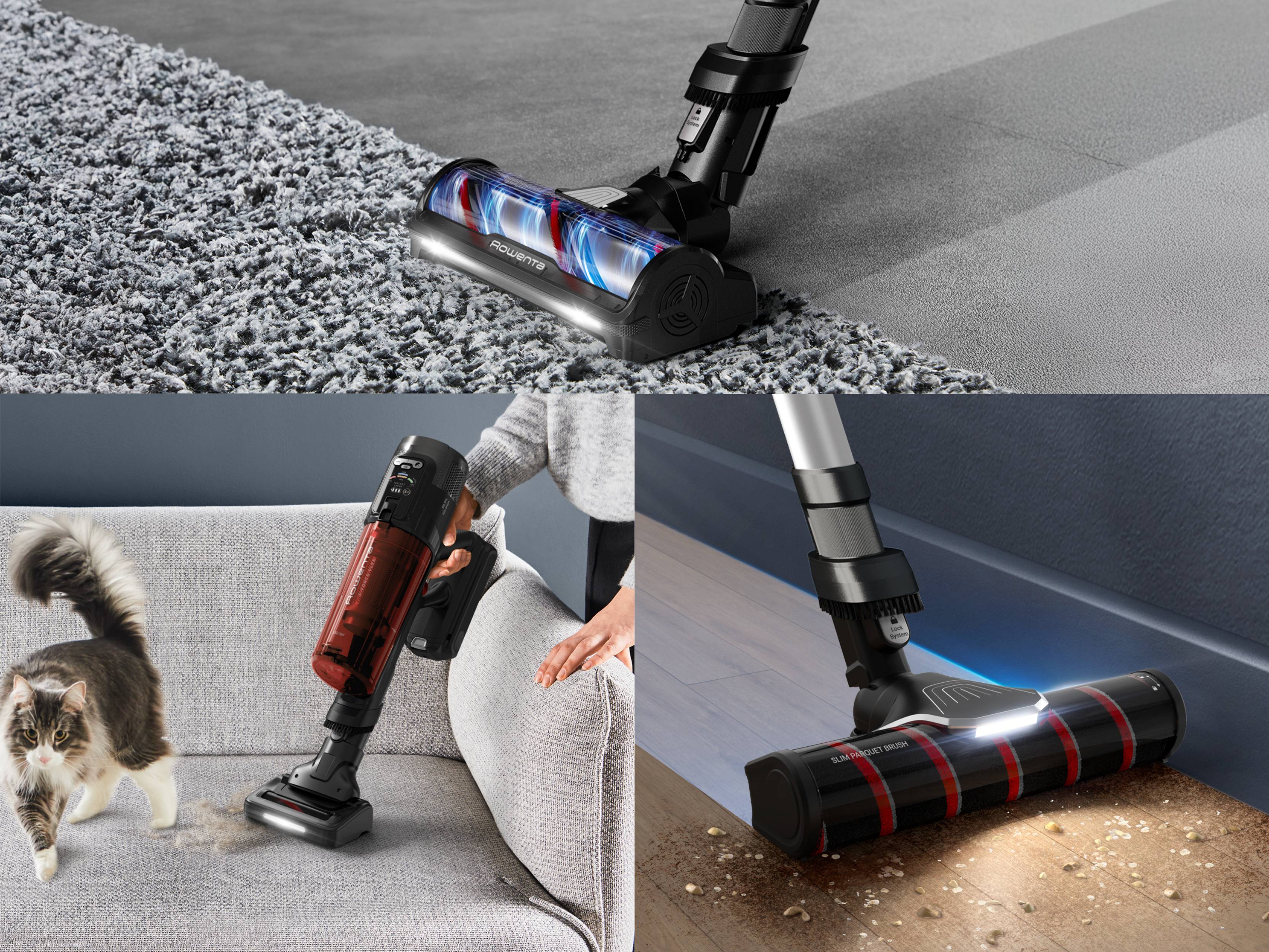 Avec ses trois brosses, découvrez la solution de nettoyage ultime pour une maison impeccable du sol au plafond. La brosse tous sols assure un nettoyage en profondeur de toute la maison, y compris les tapis, tandis que notre brosse pour sols durs avec éclairage LED offre un nettoyage exceptionnel sur des sols durs comme les parquets et la mini électrobrosse permet d'aspirer les poils d'animaux.