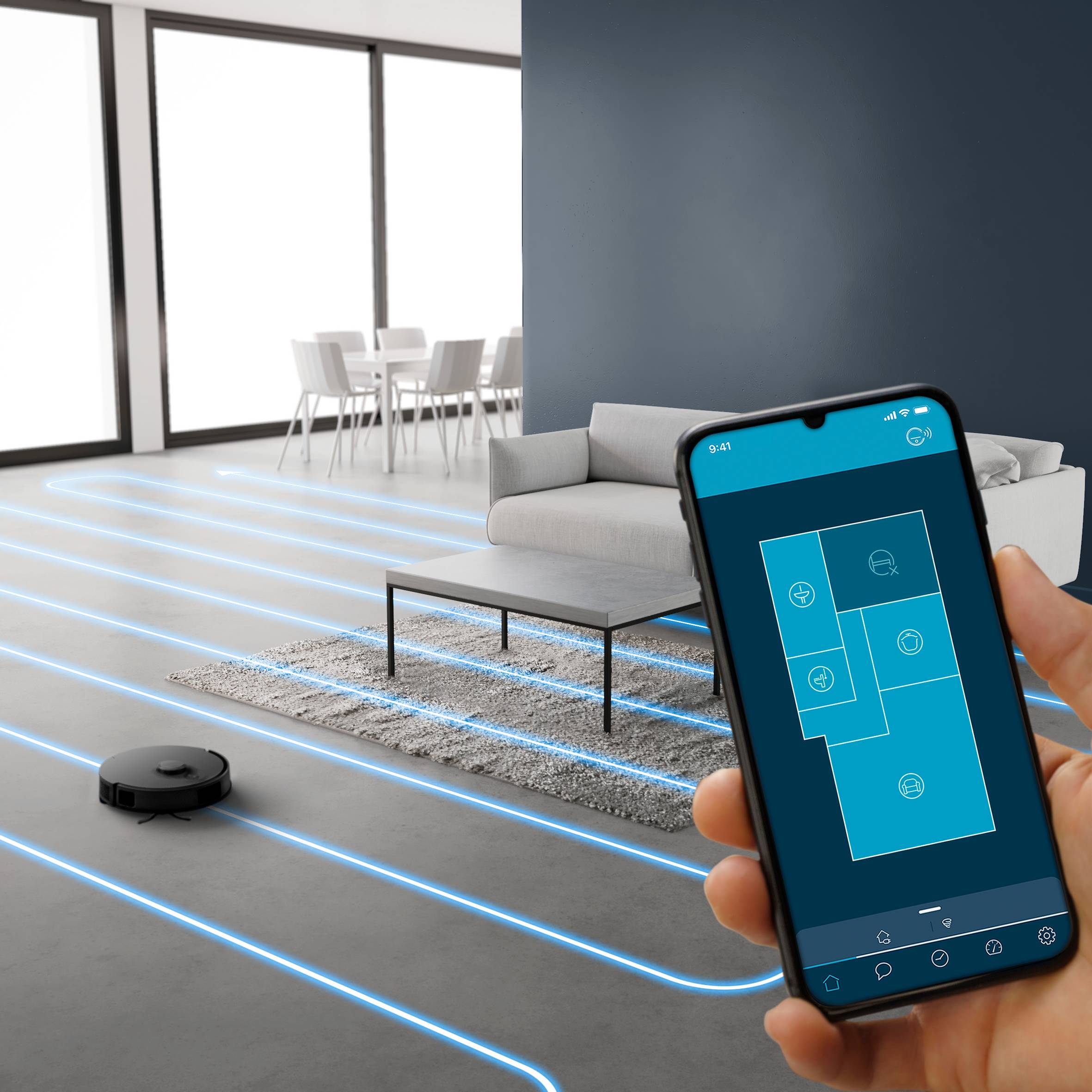 Un aspirateur robot qui offre un nettoyage automatique tellement précis que vous n'avez même plus besoin de ranger votre intérieur avant de faire le ménage Un système de vidage de la poussière automatique et pratique offrant jusqu'à 60 jours de sérénité totale Un aspirateur robot équipé d'une technologie laser haute précision pour un nettoyage intelligent et une couverture optimale des surfaces Un appareil haute performance avec une puissance d'aspiration allant jusqu'à 6 000 Pa pour un nettoyage en profondeur et un intérieur toujours impeccable Système Smart Aqua Power : le réservoir d'eau électronique ajuste le volume d'eau en fonction de vos besoins lors du lavage du sol Un nettoyage double action avec le système Smart Aqua Power pour laver les sols et des brosses intelligentes pour ramasser les saletés de toutes tailles Libérez-vous de la corvée du ménage grâce à des routines automatiques personnalisées et un contrôle Wi-Fi depuis votre smartphone L'aspirateur robot revient à sa station d'accueil pour se recharger avant de reprendre le nettoyage